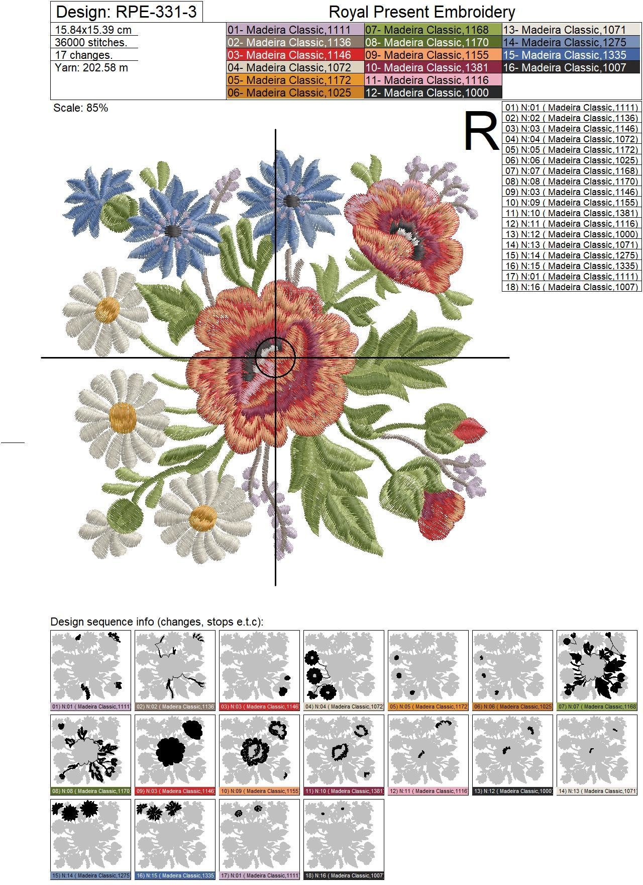 Size: 128.4x124.7 mm (5.06x4.91 "), Stitches: 28453