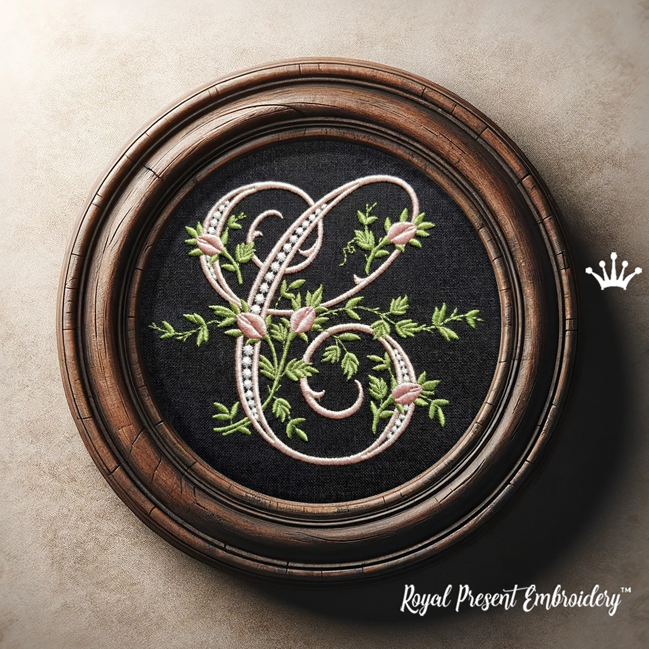 Companion design available — Monogram B with Roses machine embroidery design, allowing you to create coordinated sets in the same elegant style.