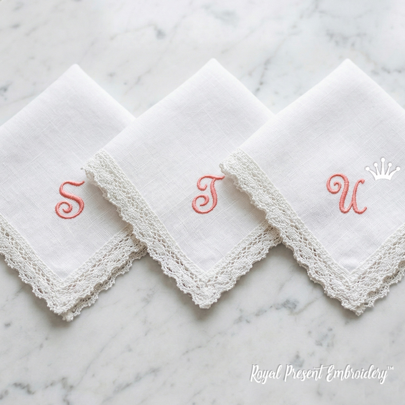 French Script Capital Letters S-T-U Set Machine Embroidery Designs features elegant uppercase script letters for monograms, initials, personalized towels, linens, apparel, and gift embroidery. A beautiful French-style embroidery alphabet set for creating refined custom projects with timeless decorative charm and classic monogram elegance.