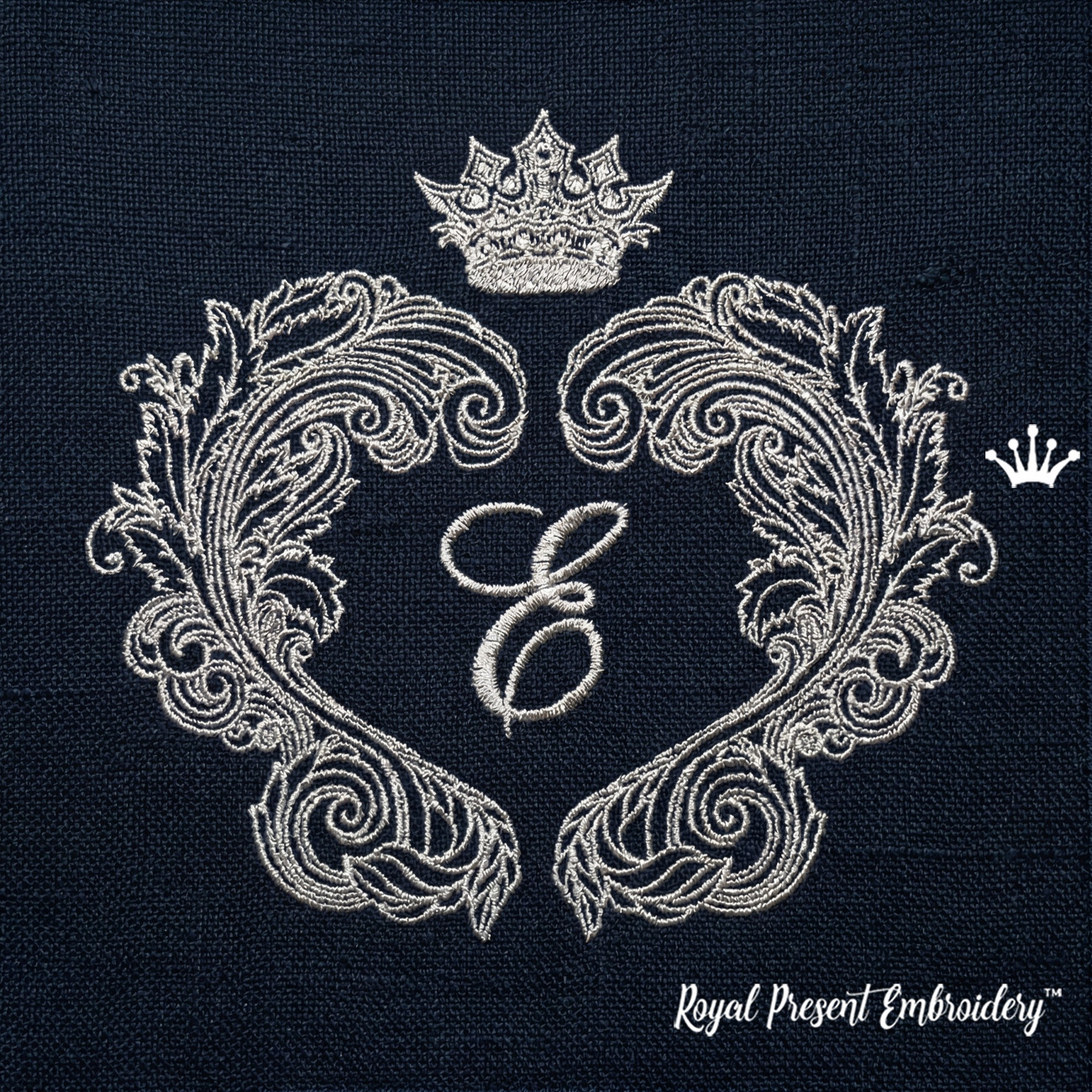 Immerse yourself in an atmosphere of royal luxury! An exquisite baroque-style outline frame, crowned with an elegant coronet, is the perfect way to personalize any textile item. The airy, ornate patterns of this classic motif create an ideal central space to place one or more letters of your monogram.