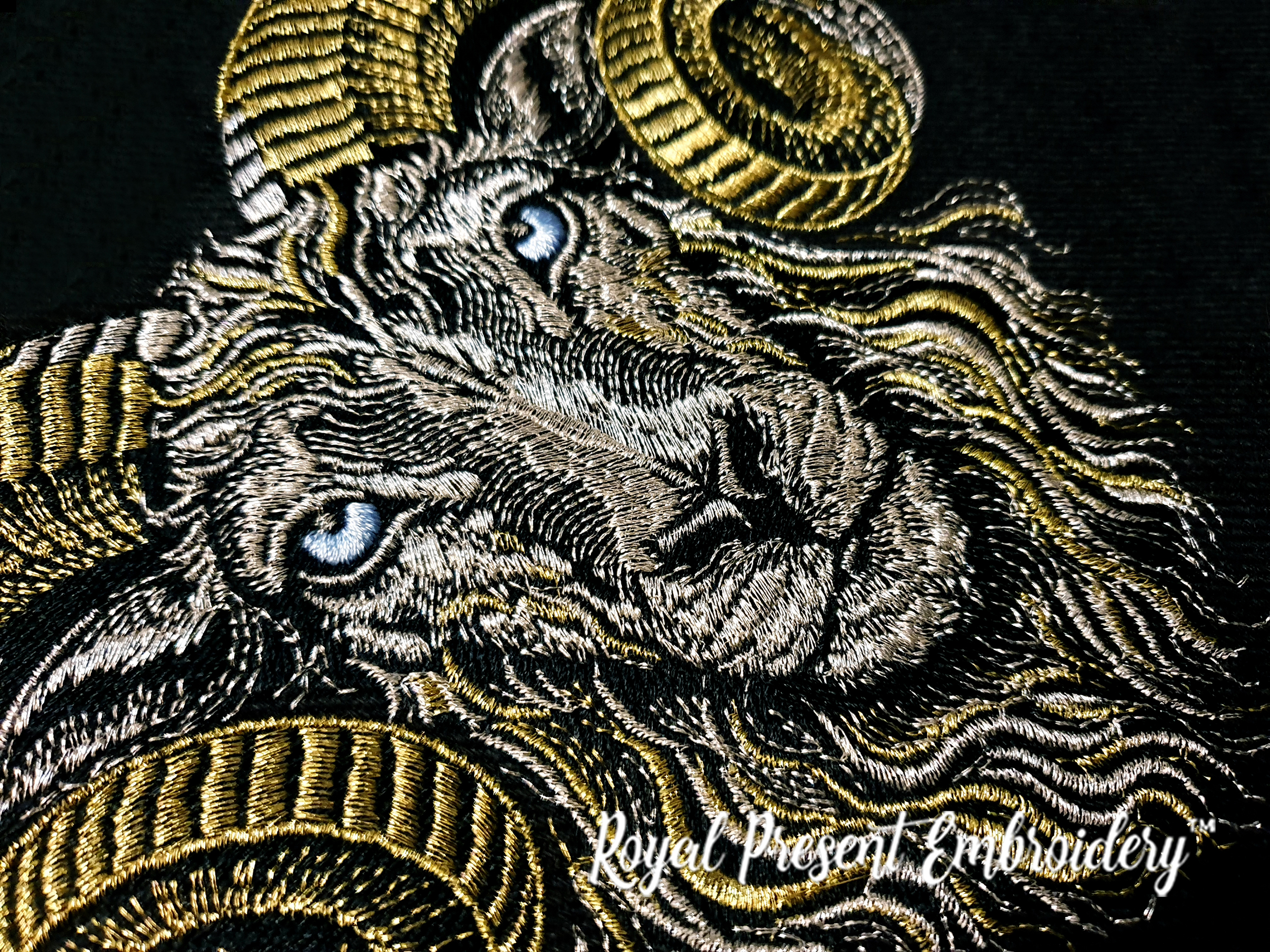 This astrological machine embroidery design is dedicated to the Aries zodiac sign, featuring many thin, elegant lines that give it a unique graphic and artistic style.