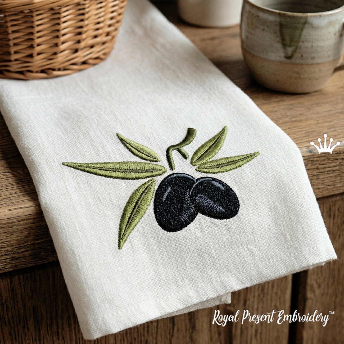 Créez un ensemble cohérent pour votre cuisine et votre salle à manger ! Ce motif "Olive Branch" a un compagnon dédié : le motif de broderie machine "Olives".