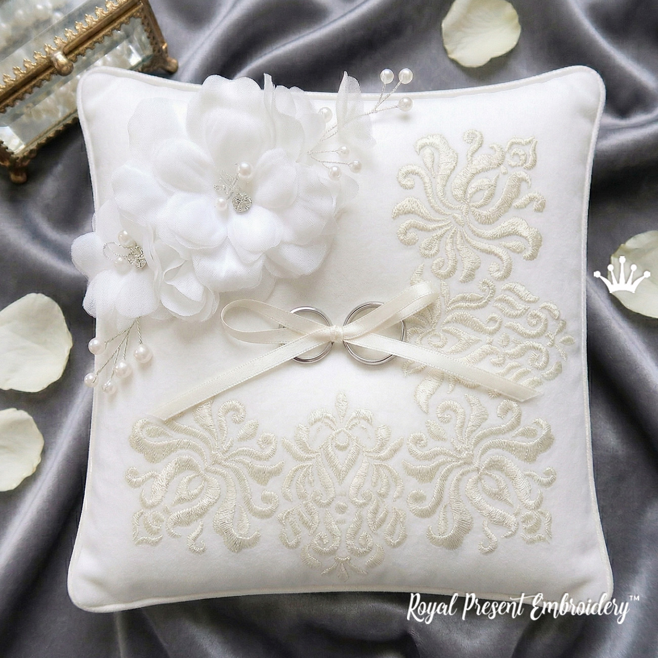 Ce motif a également un magnifique compagnon, le motif de broderie machine Vintage Damask, et ensemble ils créent un ensemble parfaitement coordonné pour des coussins élégants, des accessoires de mariage, du linge de maison et des projets de décoration raffinés.