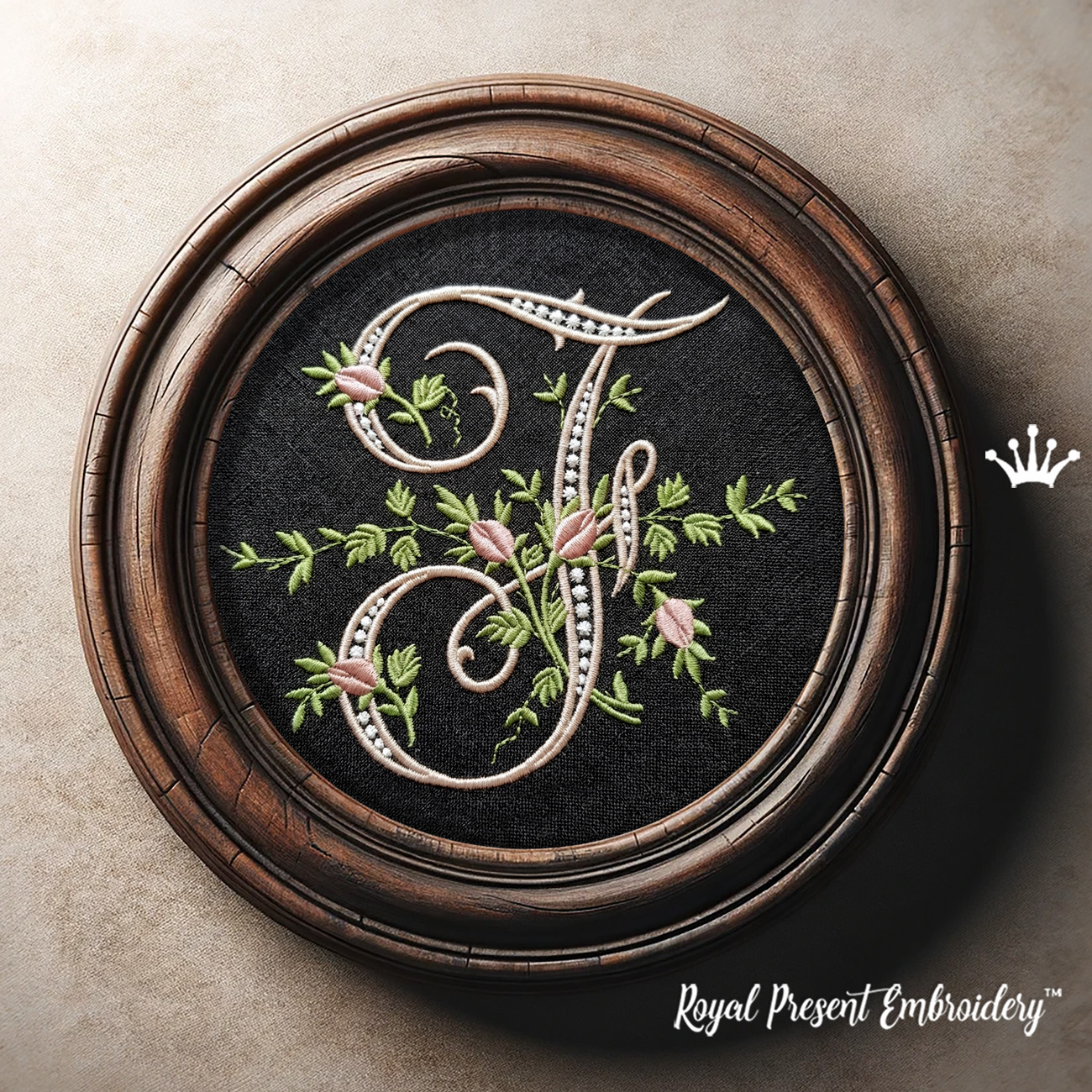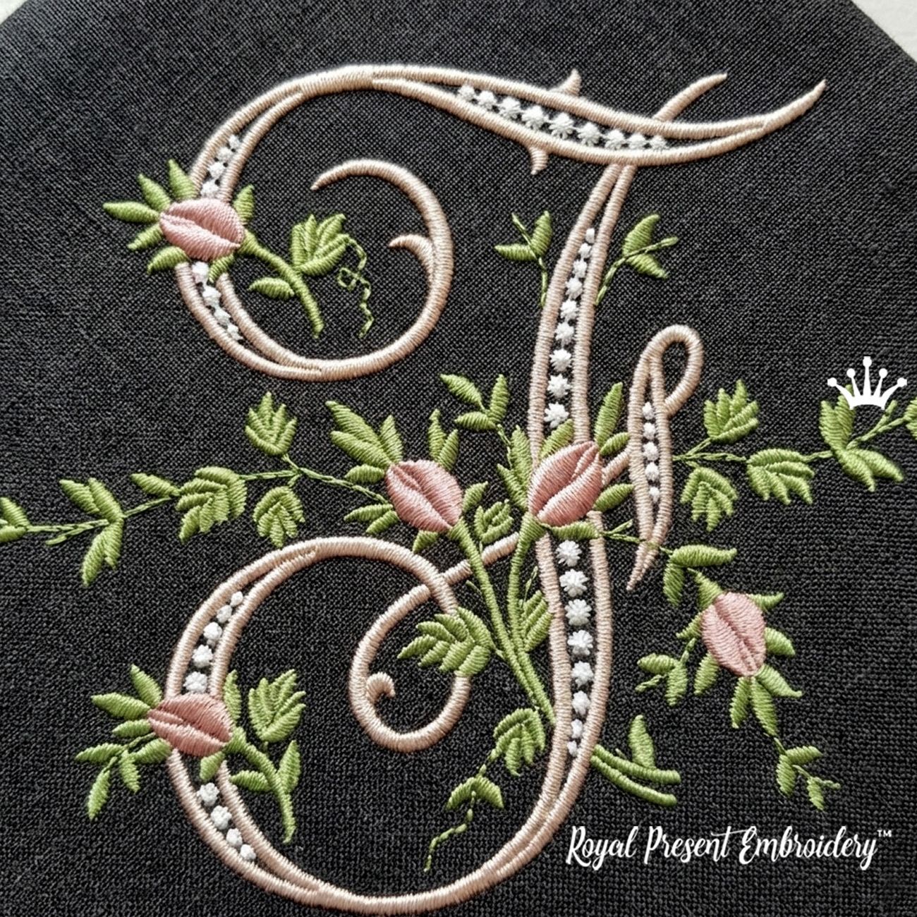 Monogramme F avec roses Motif de broderie machine