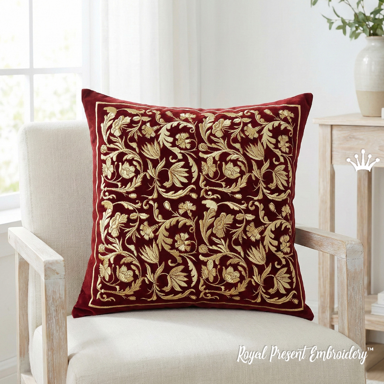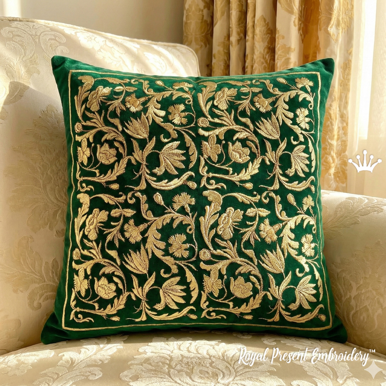 Motif de broderie machine Carré ornemental baroque - cadre symétrique élégant avec de riches feuilles déroulantes et des détails floraux classiques. Parfait pour les coussins décoratifs, le linge de table, les quilts, les panneaux muraux et les projets de décoration de luxe. Numérisé avec une densité équilibrée et des points satin propres pour un résultat raffiné et dimensionnel. Téléchargement instantané dans plusieurs formats de machines à broder.