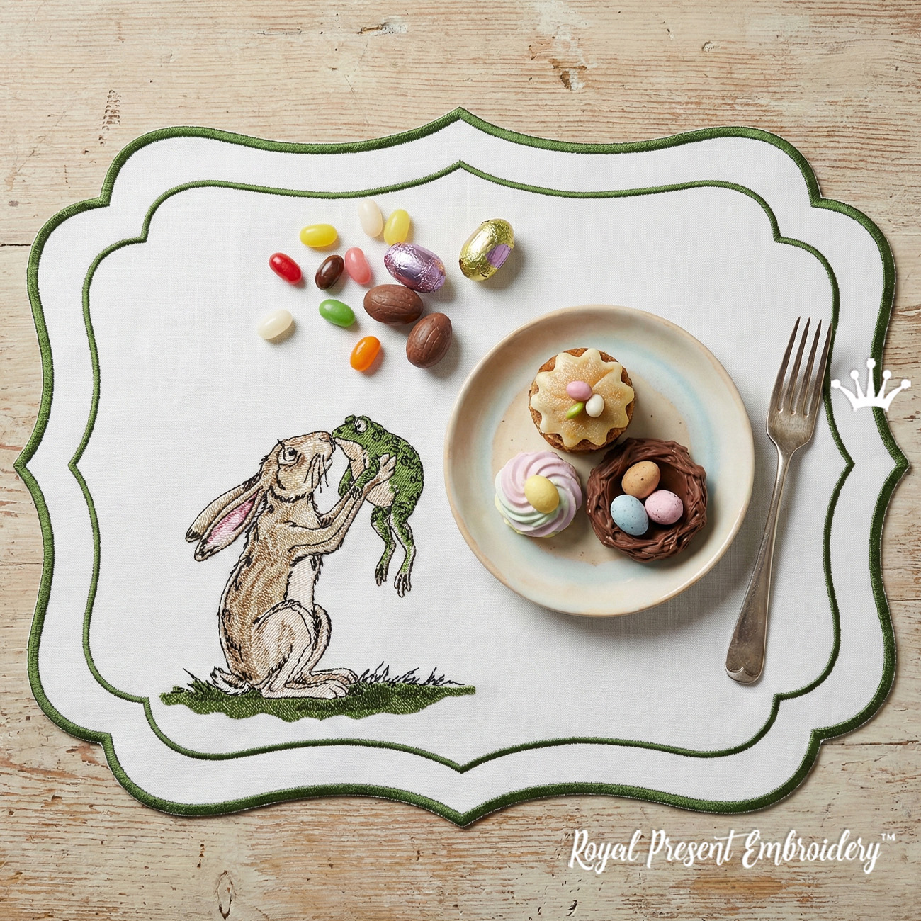 Lièvre et grenouille Grand motif de broderie machine Une scène de conte de fées touchante avec des détails artistiques expressifs. Parfait pour les coussins décoratifs, les couvertures, les panneaux muraux et les textiles pour enfants. Soigneusement numérisé avec des transitions de points douces et des contours nets pour créer l'effet d'une illustration vivante. Téléchargement instantané disponible dans les formats de machines à broder les plus courants.