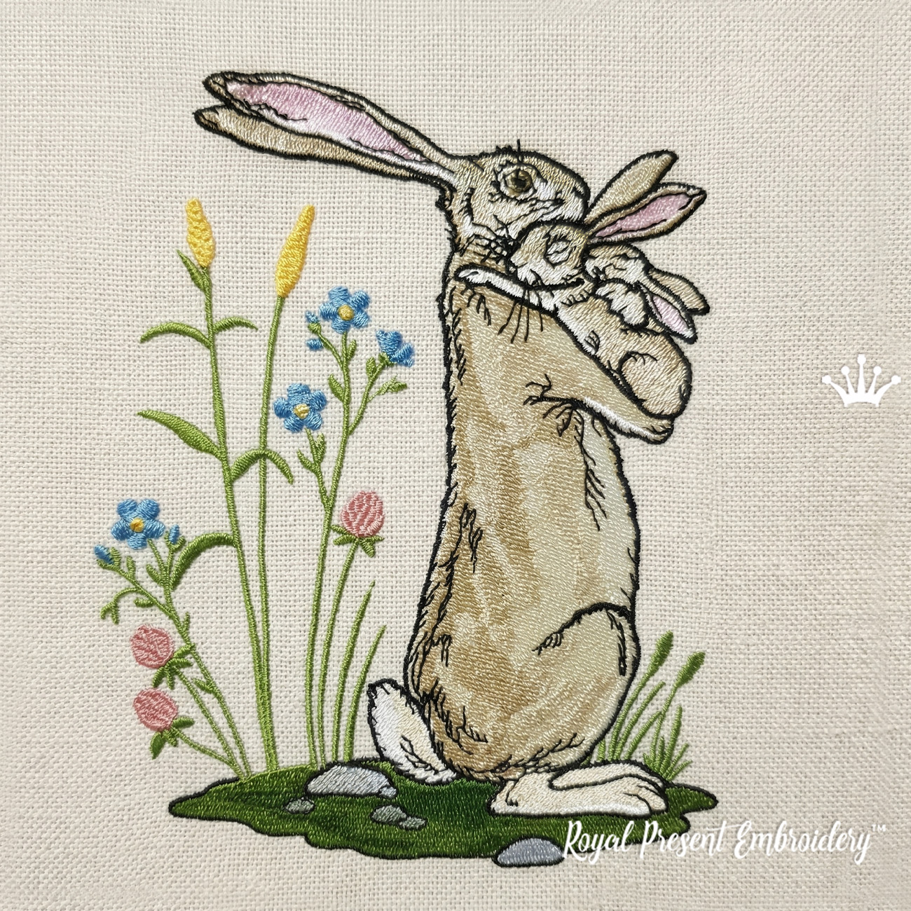 Mother Rabbit Hugging Baby Bunnies Embroidery Design est un motif qui réchauffe le cœur et qui transmet la chaleur, l'attention et l'amour. Il est parfait pour les articles de bébé, les cadeaux de naissance et les textiles d'intérieur. Ce motif est magnifique sur les vêtements, les couvertures, les oreillers et les accessoires, créant une atmosphère douce et réconfortante.