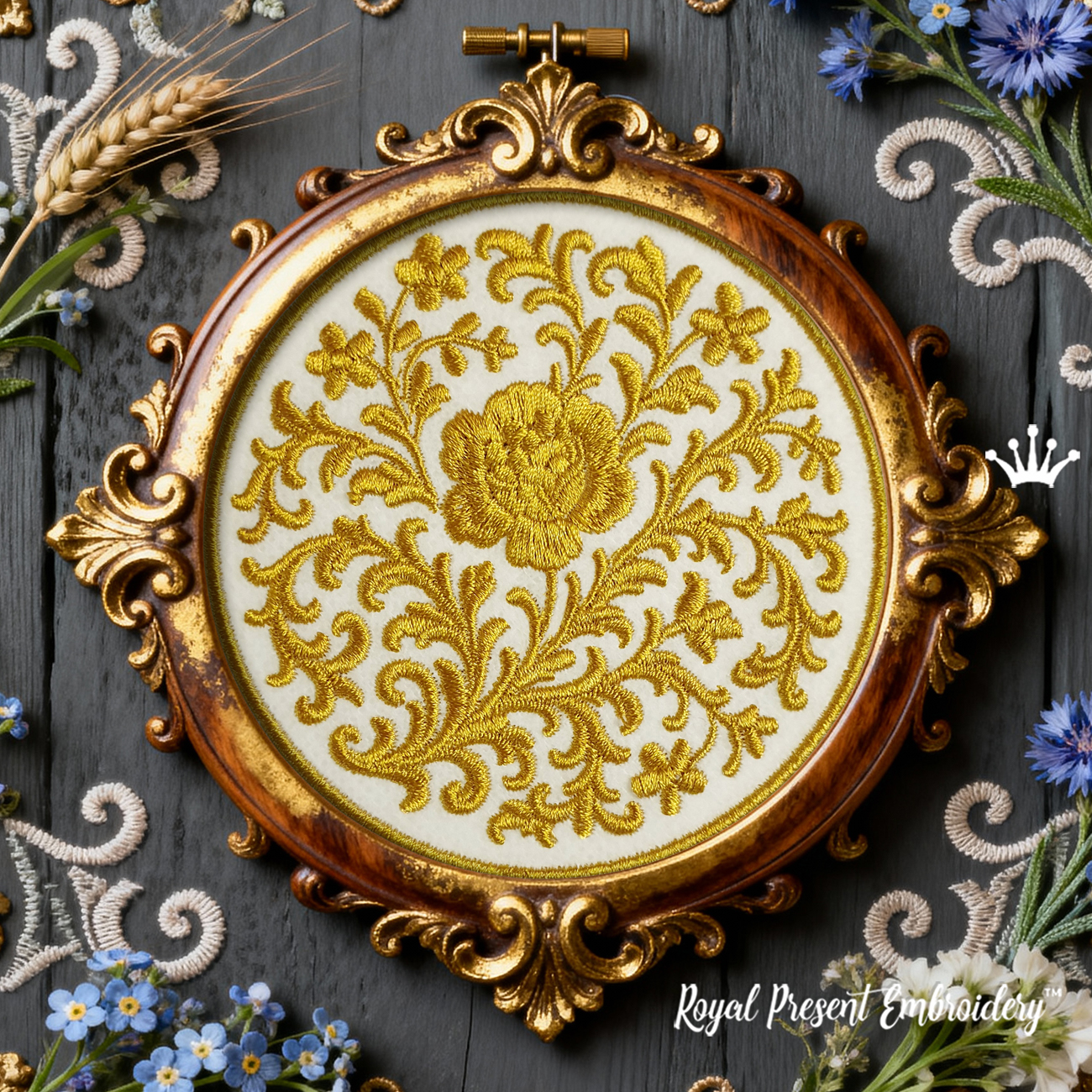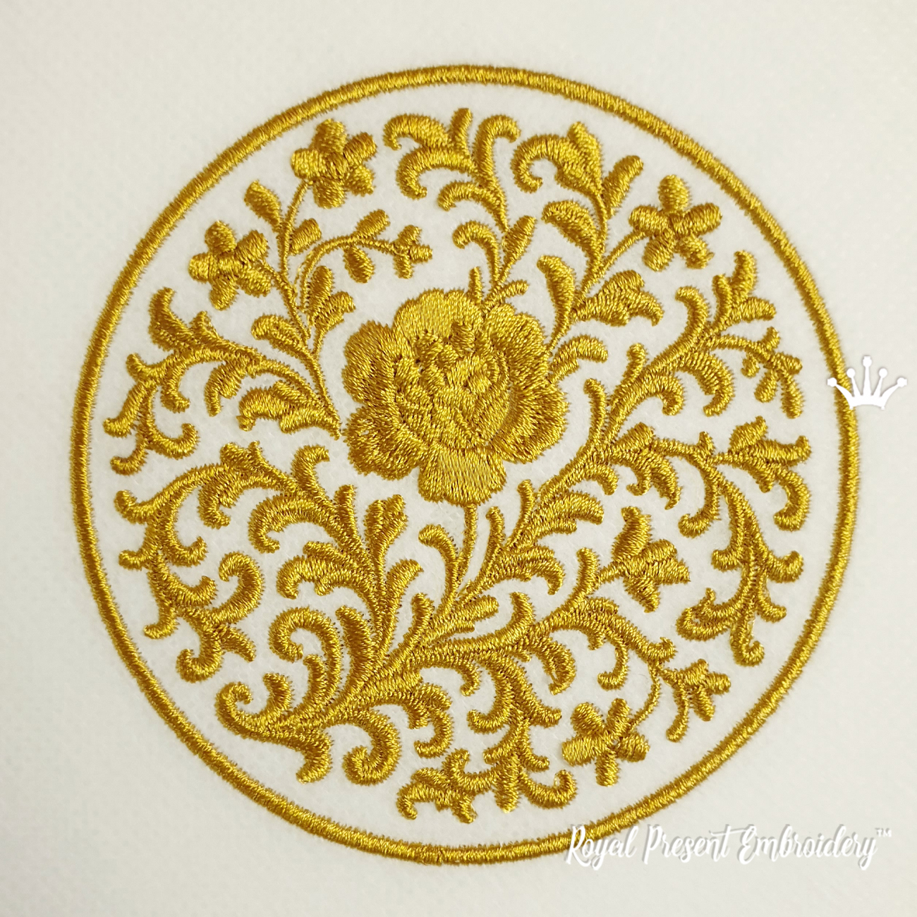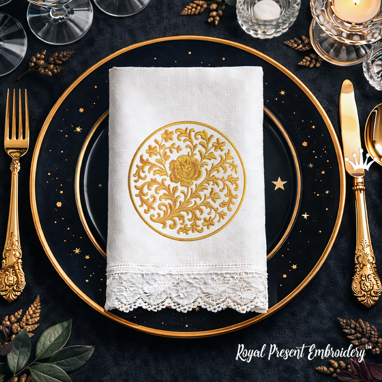 Ornement ovale de roses - motif de broderie machine dans un élégant style floral et vintage. La composition ovale raffinée avec des roses ajoute une touche classique et luxueuse au linge de table, aux serviettes de table, aux oreillers, à la décoration intérieure et aux projets de cadeaux. Parfait pour les intérieurs intemporels et les travaux de broderie sophistiqués. Disponible en téléchargement immédiat et prêt à piquer sur votre machine à broder.