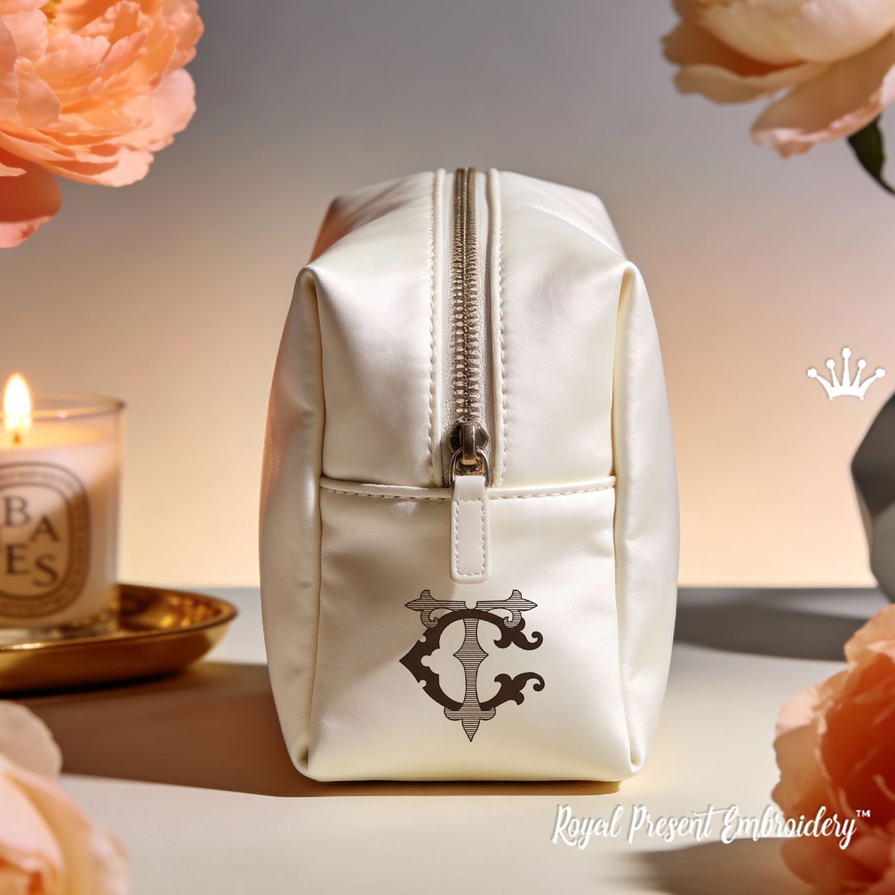 Monogram CT-TC is a machine embroidery design in a classic vintage style with ornamental flourishes and fine detailing. Perfect for personalizing accessories, pouches, gifts, and home décor. Available for instant download. Matching companion designs can be found in the "Simple Monogram designs" section.