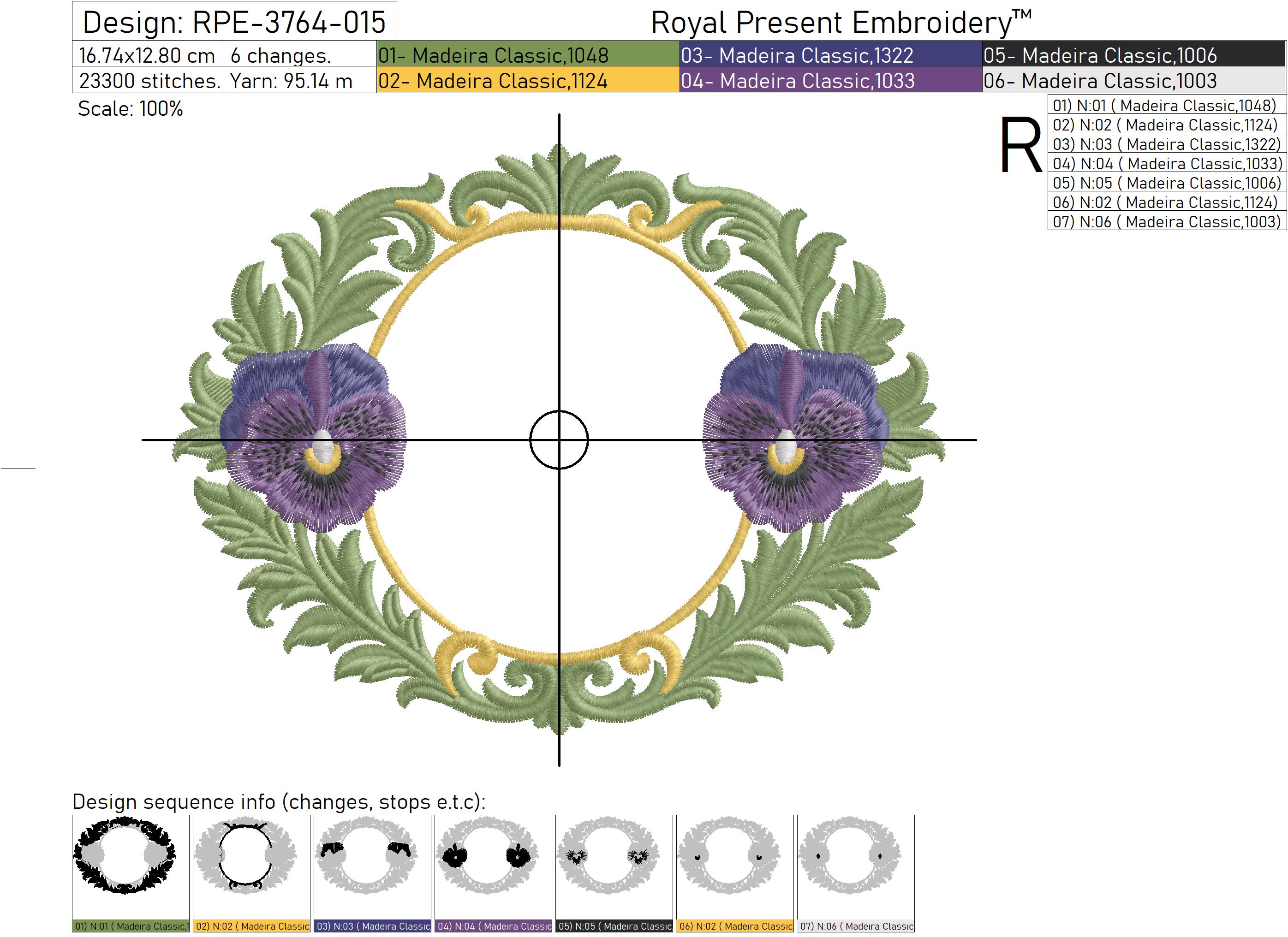 Enhance your textile projects with this Pansy Frame Baroque machine embroidery design.