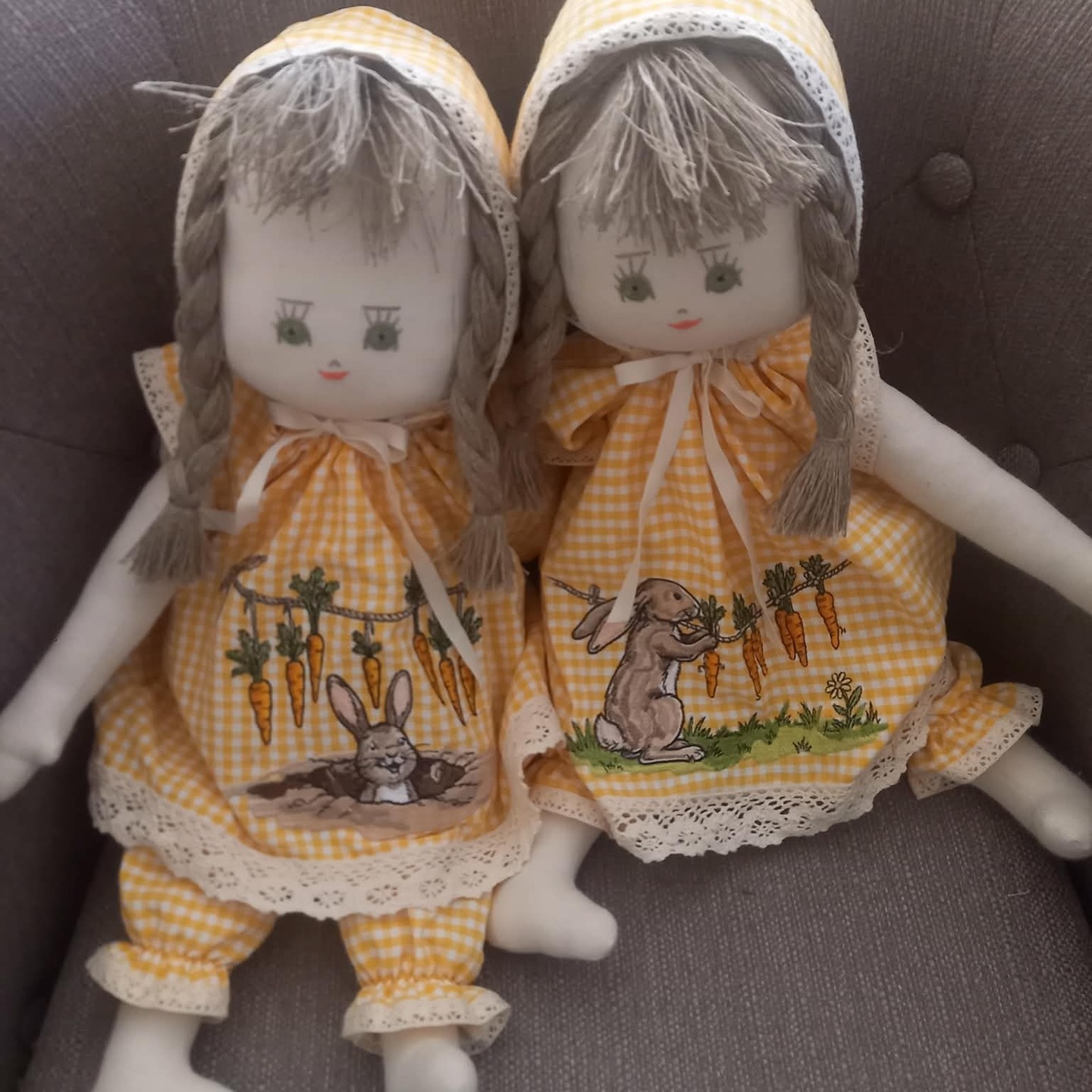 Two Vintage Easter Bunnies Set - 3 sizes