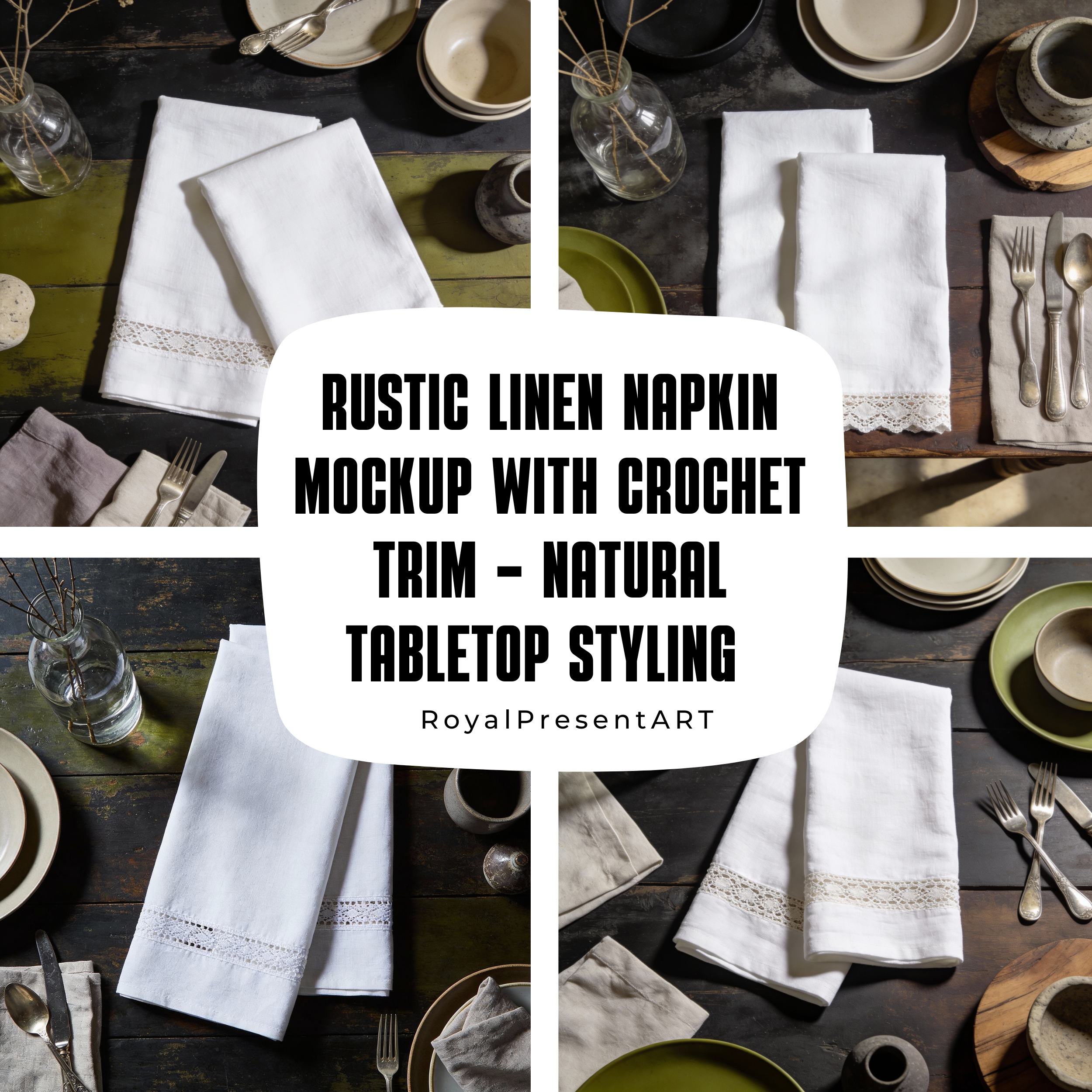 Bring your embroidery or print designs to life with this high-resolution Rustic Linen Napkin Mockup featuring elegant crochet trim. Styled on a natural, rustic tabletop with neutral ceramics and textured elements, this mockup is perfect for visualizing your work in a cozy, handcrafted setting.
