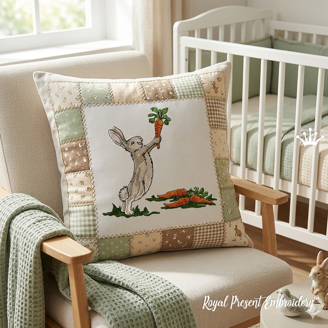Adorable Easter rabbit embroidery set featuring a sweet spring bunny with fresh carrots. Perfect for creating cozy seasonal decor, nursery accents, and handmade gifts.