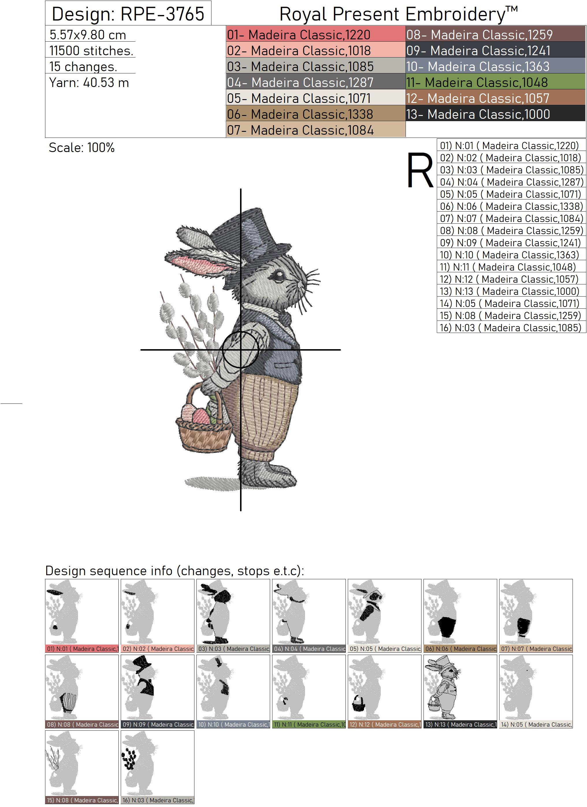 Vintage Easter bunnies, bunny with basket, Easter embroidery, animal embroidery